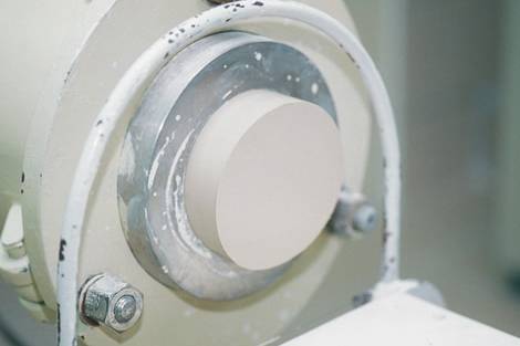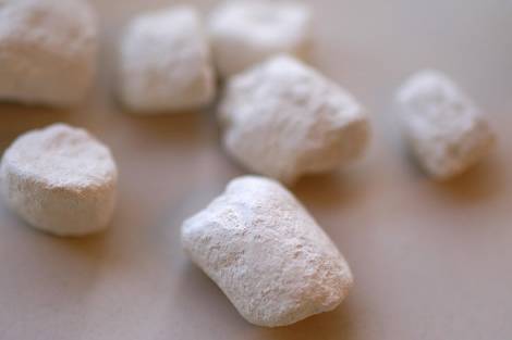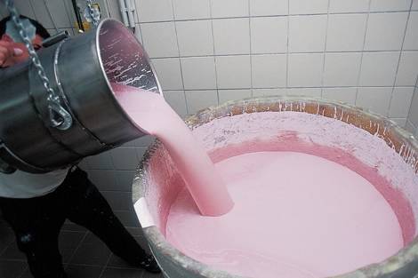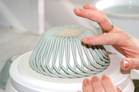 Az alapanyagokból vízzel történő keverés után kétféle masszát nyerünk – a képen a képlékeny formázómassza préselése látható.