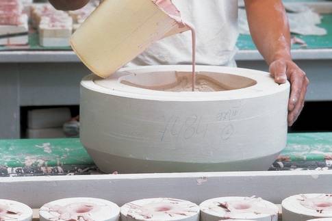 Az öntés technológiája: a gipszforma elszívja a massza jelentős víztartalmát, a szilárd szemcsék a forma falára tapadnak, így egy, az öntőformának megfelelő tárgy nyerhető.