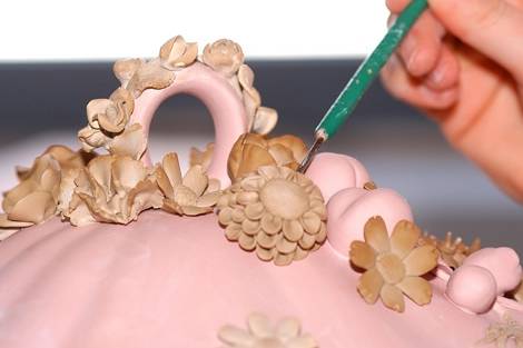 Szakértő kezek készítik elő a nyers porcelántárgyakat az első égetésre, amely kb. 950ºC-on történik